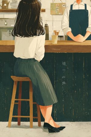 駆け込むようにして一軒のカフェの古びた木製のドアをそっと開ける。